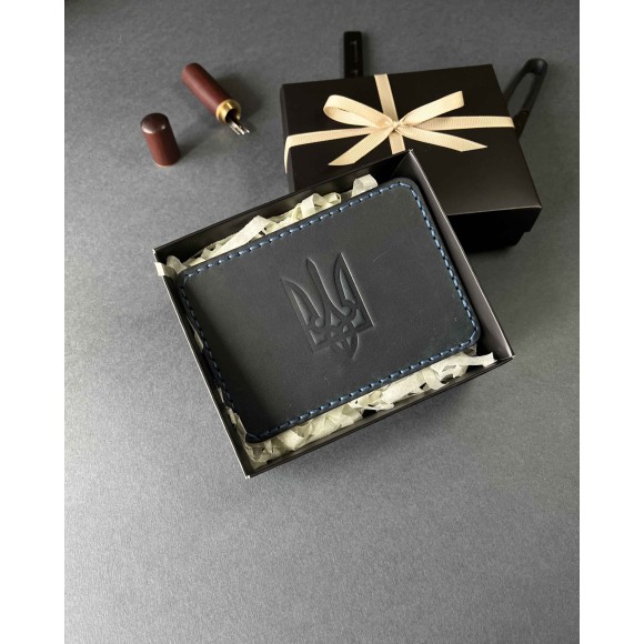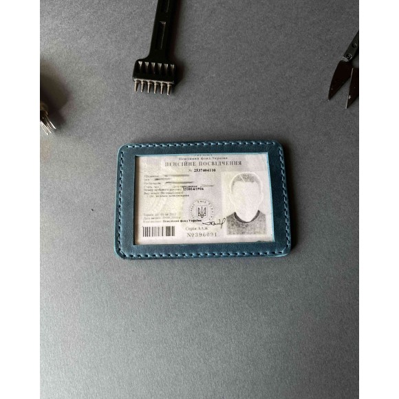 Шкіряна обкладинка для пенсійного посвідчення синя ( в подарунковому пакуванні)