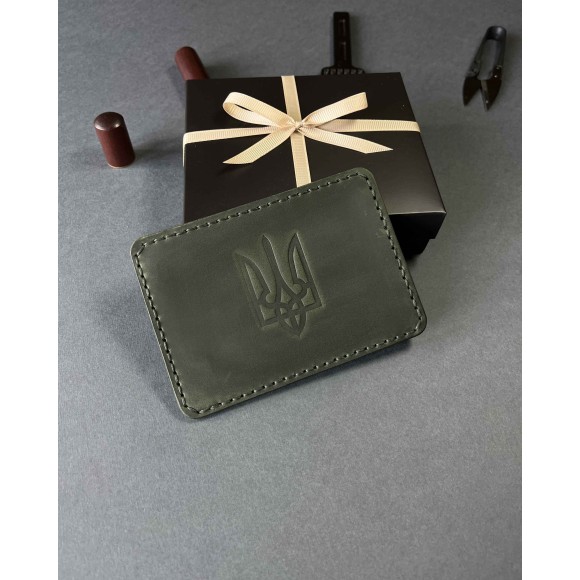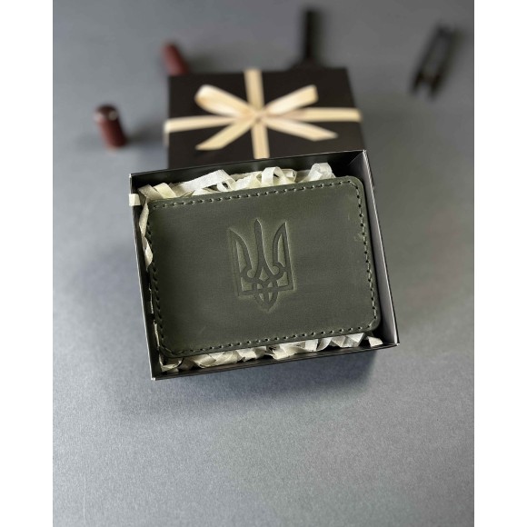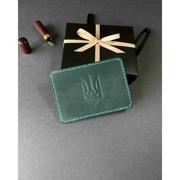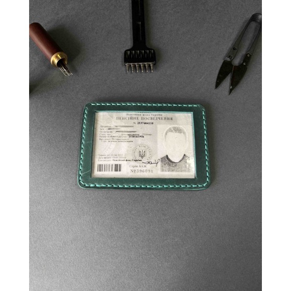 Шкіряна обкладинка для пенсійного посвідчення зелена ( в подарунковому пакуванні)