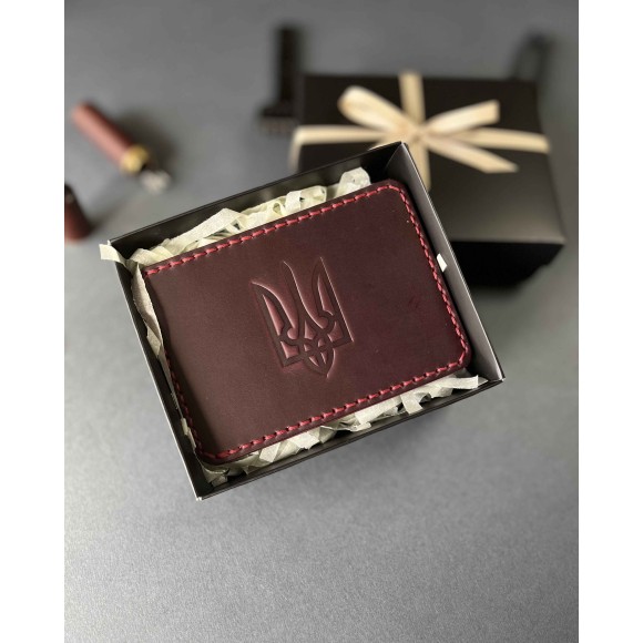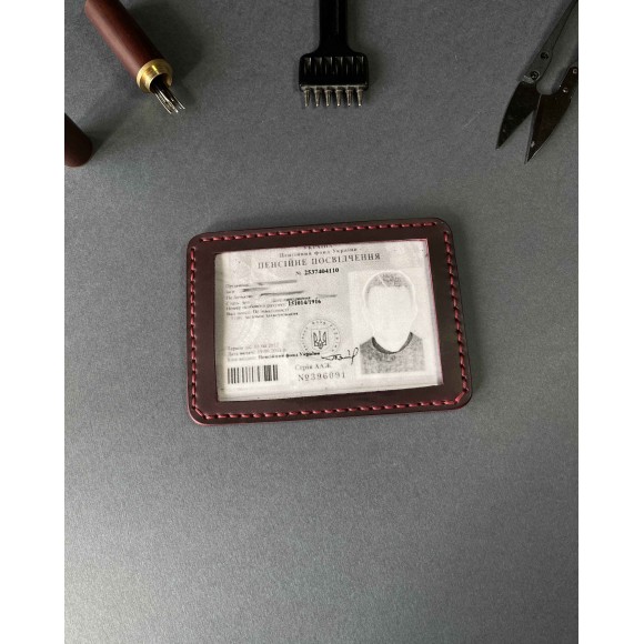 Шкіряна обкладинка для пенсійного посвідчення бордова ( в подарунковому пакуванні)