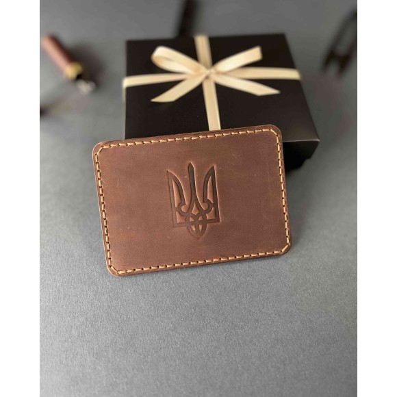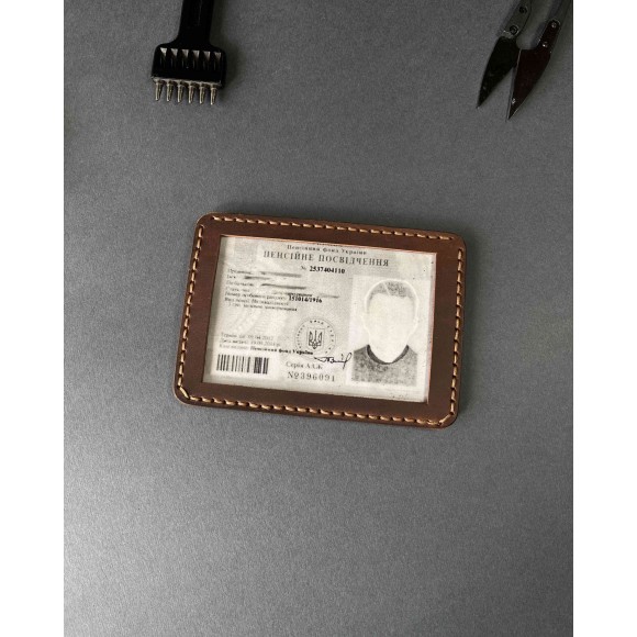 Шкіряна обкладинка для пенсійного посвідчення коричнева ( в подарунковому пакуванні)