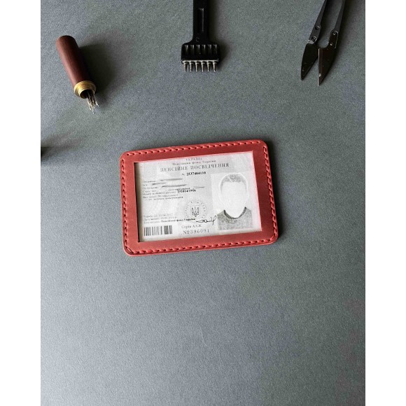 Шкіряна обкладинка для пенсійного посвідчення червона ( в подарунковому пакуванні)