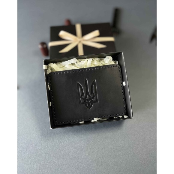 Шкіряна обкладинка для пенсійного посвідчення чорна ( в подарунковому пакуванні)