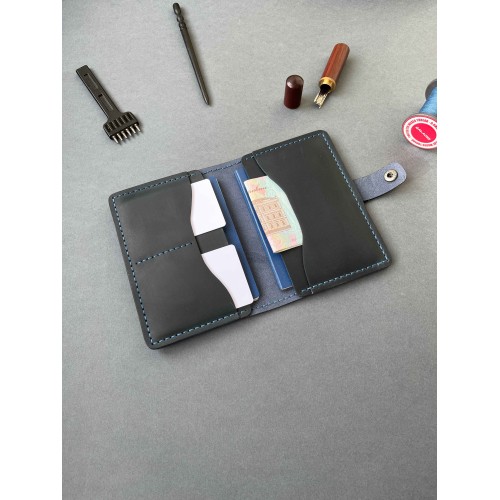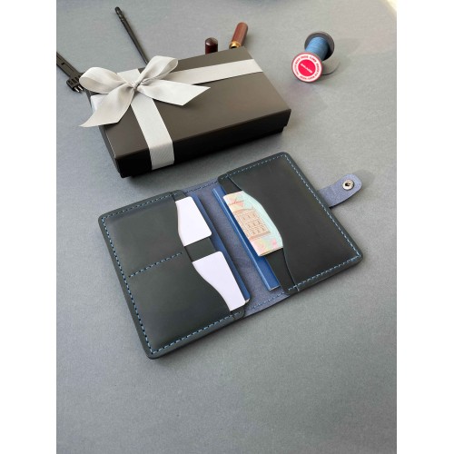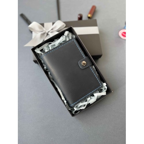 Докхолдер шкіряний синій на кнопці ( в подарунковому пакуванні)