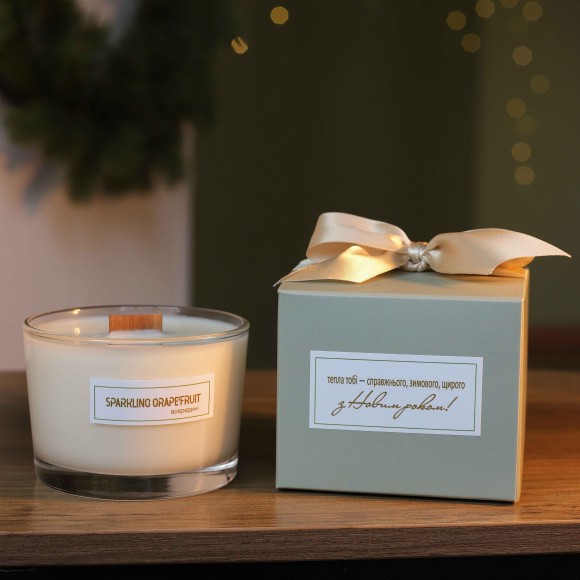 Новорічна соєва свічка з особливим написом. SPARKLING GRAPEFRUIT (Ігристий грейпфрут). ТM TEPLO всередині