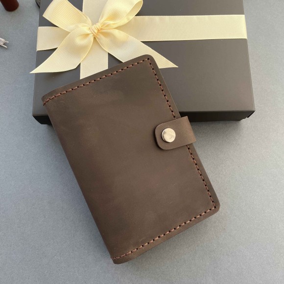 Докхолдер шкіряний шоколадний на кнопці ( в подарунковому пакуванні)