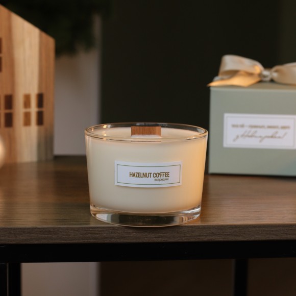 Новорічна соєва свічка з особливим написом. Hazelnut Coffee (Кава з лісовим горіхом). ТM TEPLO всередині