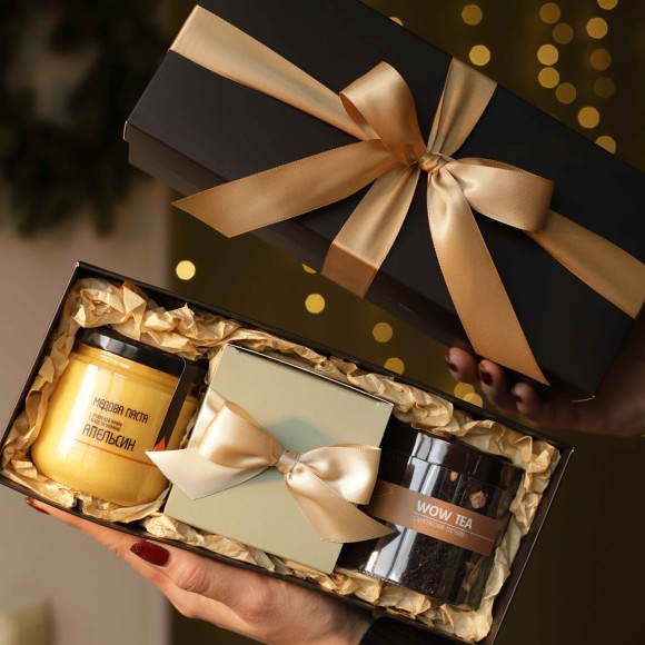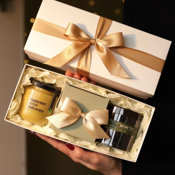 Подарунковий набір Мега-бокс з крем-медом, горіхами та чаєм