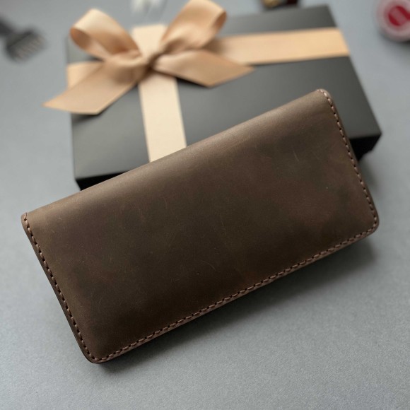 Гаманець лонгер з натуальної шкіри шоколадного кольору (в подарунковому пакуванні)