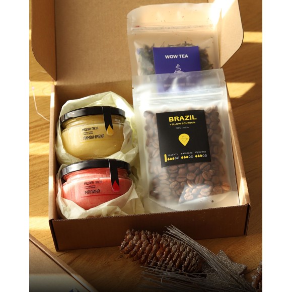 Новорічний подарунок з 4-х смаків крем-меду по 250 грамів. Крафт.