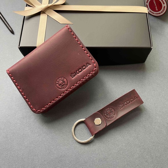Подарунковий набір для автомобіліста бордовий (марка авто на вибір)