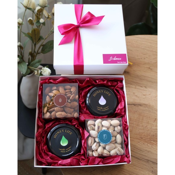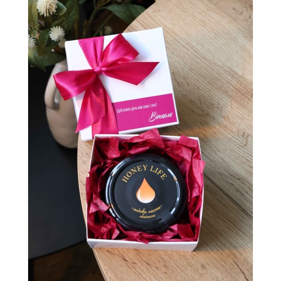 PEONY BOX - cмачний подарунок з медовою пастою 140 г. з написом на вибір