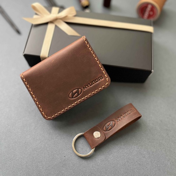 Подарунковий набір для автомобіліста коричневий (марка авто на вибір)