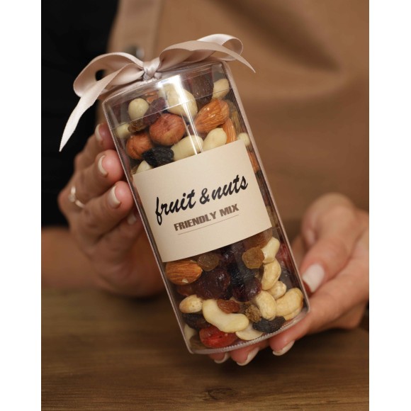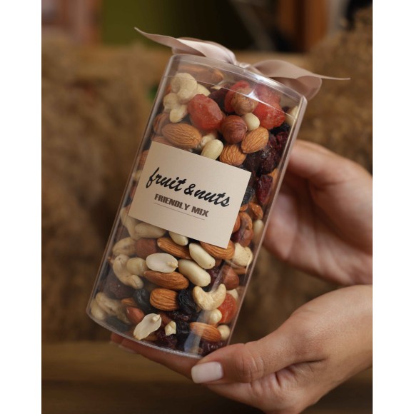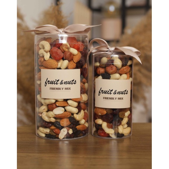 Асорті в тубусі 450 г: горіхи, сухофрукти.