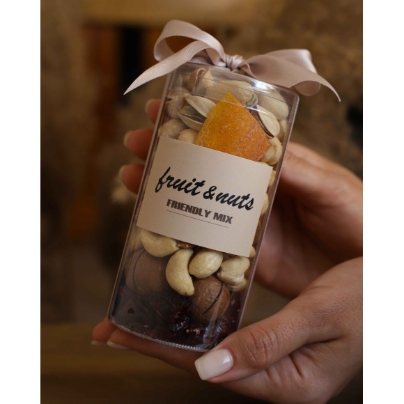 Асорті в тубусі 200 г: горіхи, сухофрукти.