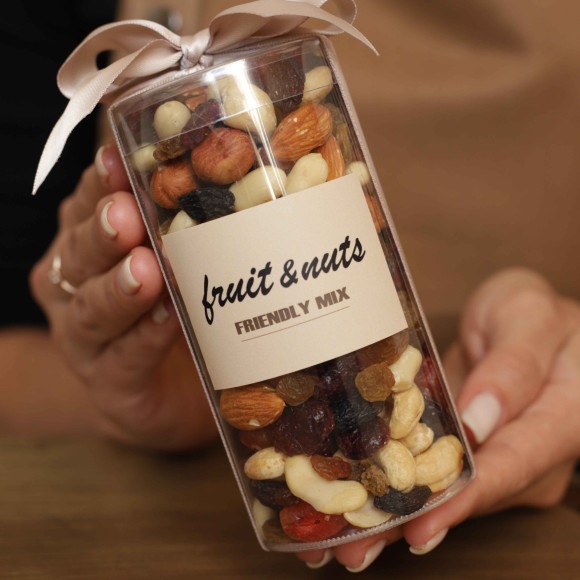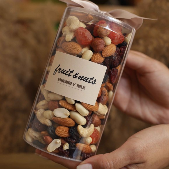 Асорті в тубусі 450 г: горіхи, сухофрукти.