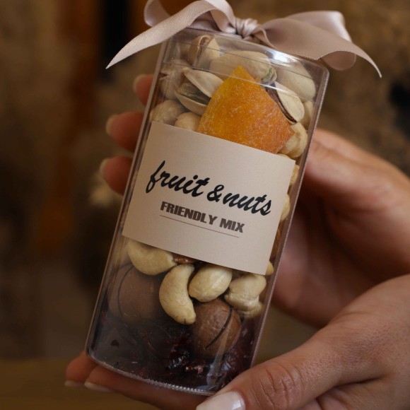 Асорті в тубусі 200 г: горіхи, сухофрукти.