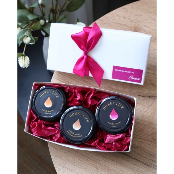 Набір з медовою пастою Peony Box (3×140 г) — подарунок жінці, мамі, коханій на День народження або інше свято