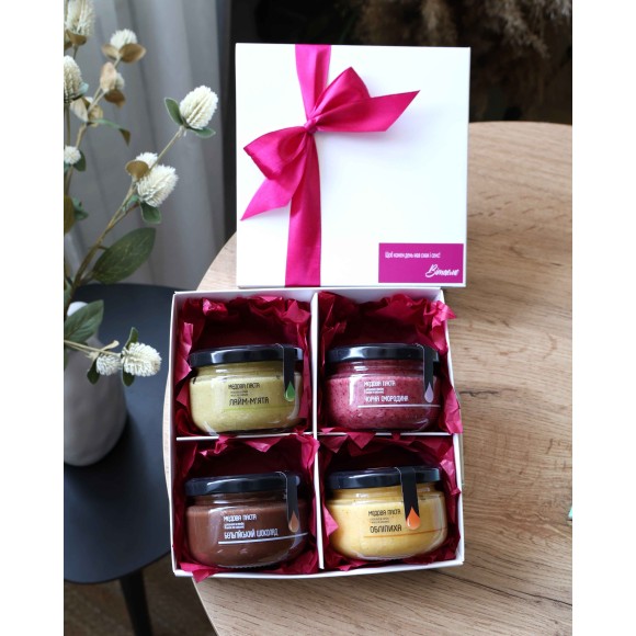 Набір з медовою пастою Peony Box (4×140 г) — подарунок жінці, мамі, коханій на День народження або інше свято