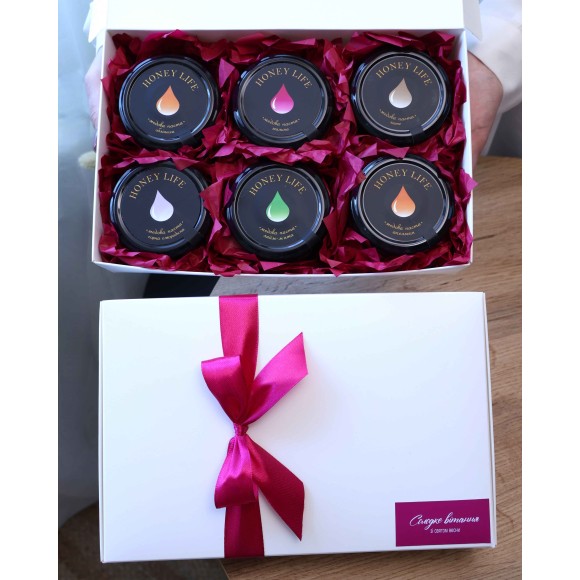 Набір з медовою пастою Peony Box (6×140 г) — подарунок жінці, мамі, коханій на День народження або інше свято