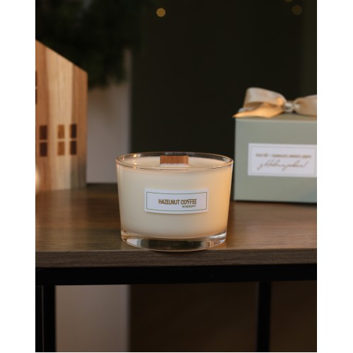 Новорічна соєва свічка з особливим написом. Hazelnut Coffee (Кава з лісовим горіхом). ТM TEPLO всередині