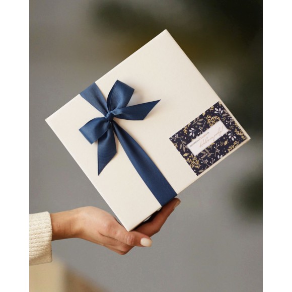 Смачний подарунок до новорічних свят. Чайно-медовий бокс №2 в синьому оформленні