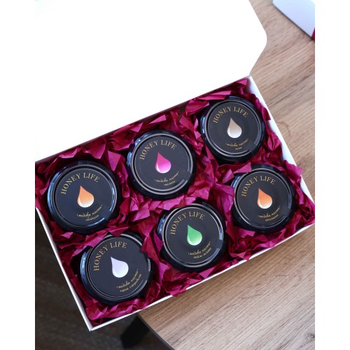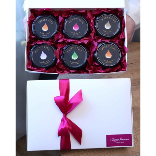 Смачний подарунок PEONY BOX з медовою пастою 6 по 140 г. з особливим написом на вибір