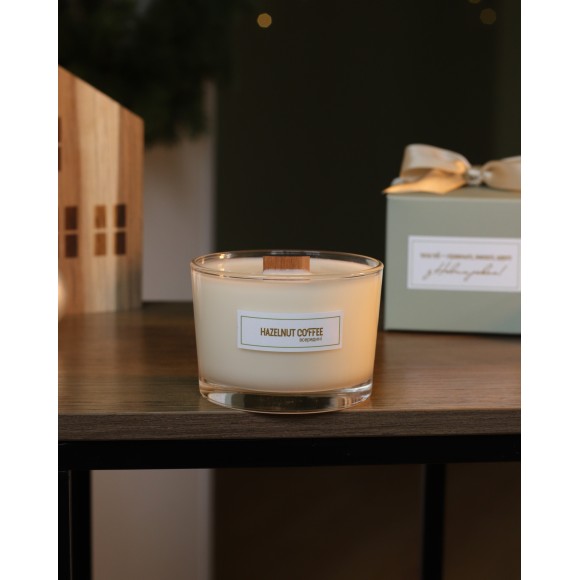 Новорічна соєва свічка з особливим написом. Hazelnut Coffee (Кава з лісовим горіхом). ТM TEPLO всередині