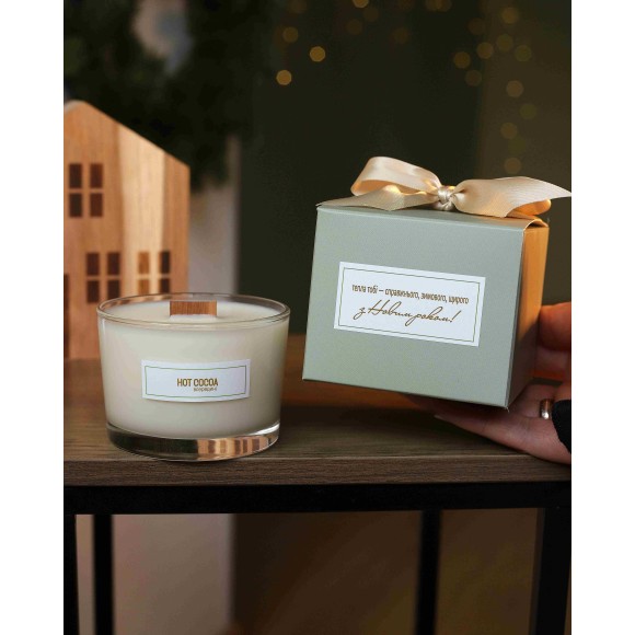 Новорічна соєва свічка з особливим написом. Hot Cocoa (Гаряче какао). ТM TEPLO всередині