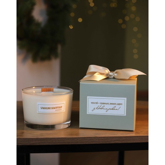 Новорічна соєва свічка з особливим написом. SPARKLING GRAPEFRUIT (Ігристий грейпфрут). ТM TEPLO всередині
